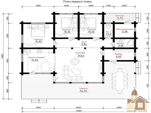 Купити зруб дерев’яного будинку під ключ — Дерев’яний будинок «Одеса Велес»